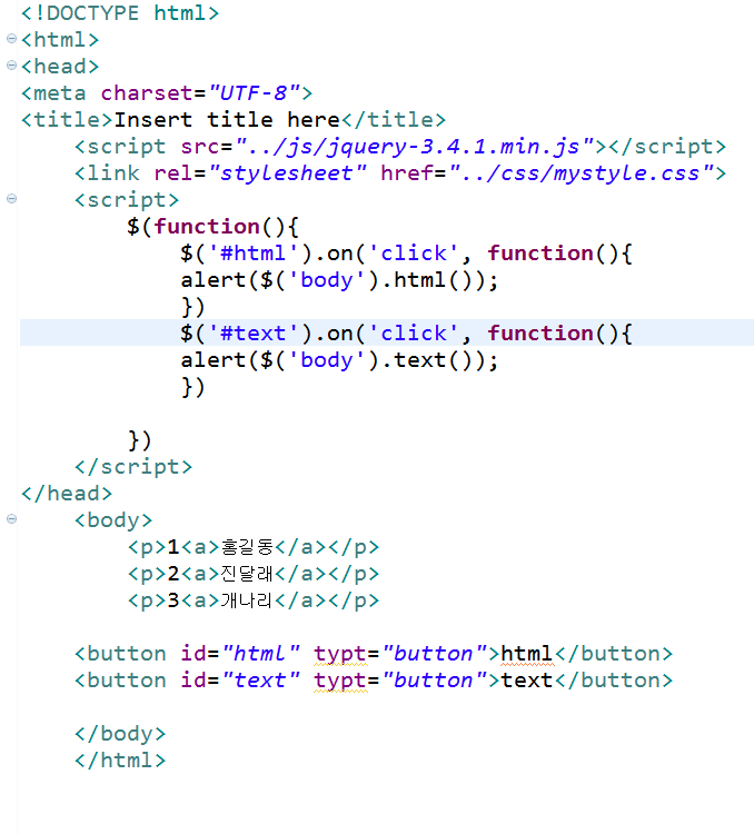 ex) alert($('body').html()); -> body태그 안의 모든 태그를 포함한 문장