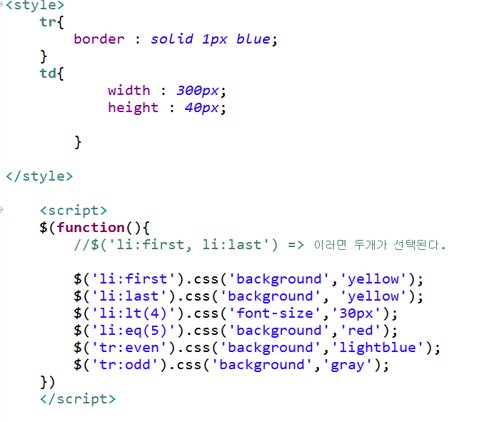 - 짝수번째로 오는 tr태그에 배경색 밝은 파란색 주기