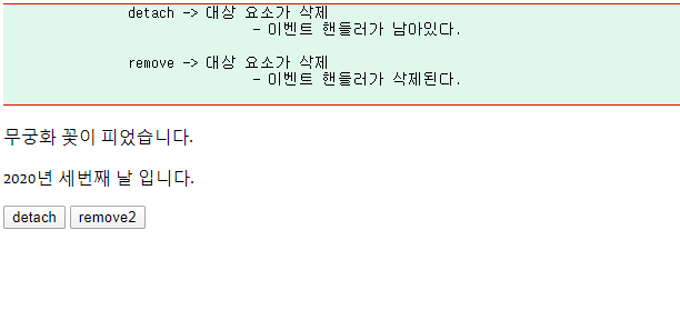 $('#remove').click(function(){ --> id remove 삭제 후 id p2 div에 생성