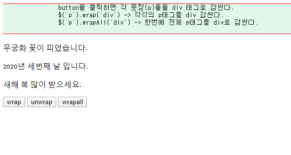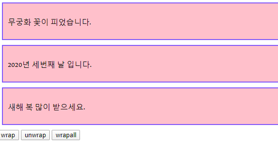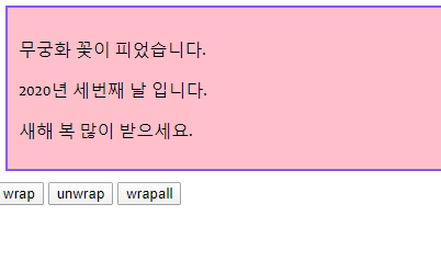 --> id wrapall인 버튼 클릭 시 p 태그에 wrapAll주기