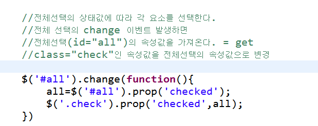 --> 전체선택(id="all")의 속성값을 가져온다. = get
