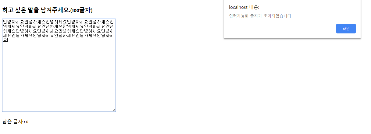 if(len>100){ --> 작성한 글자가 100자가 초과되면 alert창을 띄우고 더 이상 작성인 안되게 함