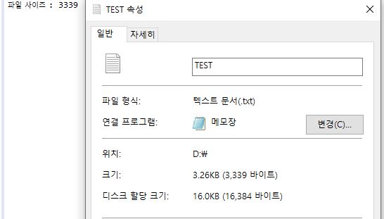 해당경로에 있는 txt파일의 크기가 나오는걸 확인할 수 있습니다.