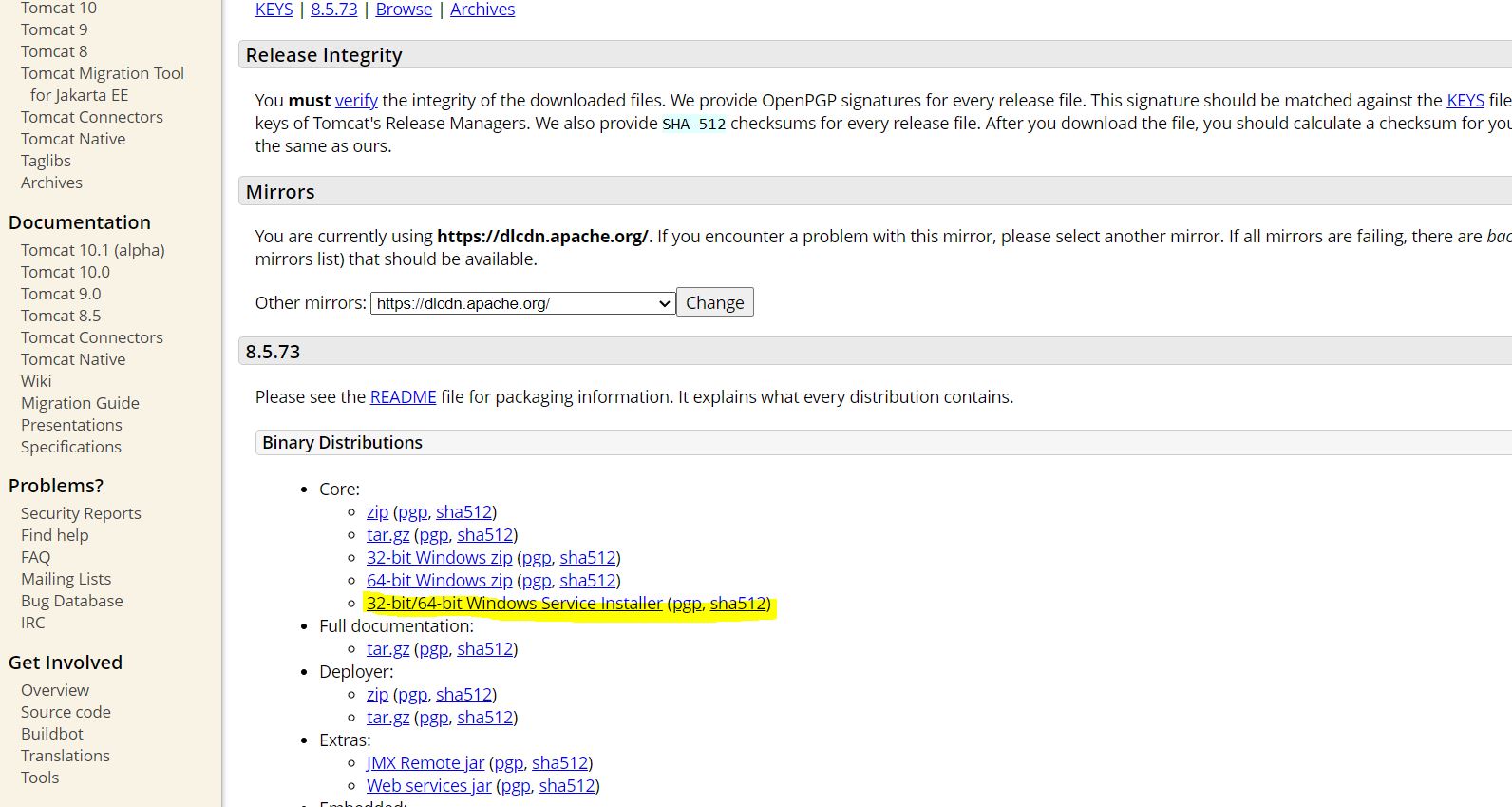https://tomcat.apache.org/ -> 톰캣 홈페이지에 접속에서 자신이 다운받아야 되는 톰캣 버전을 다운 받습니다.