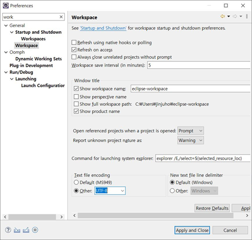 Other를 체크한 후 UTF-8을 찾아 변경한다.